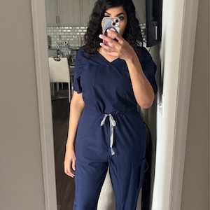 Navy Blue Jumpsuit Scrub Soft Stretch Fabric Runs Big Has Etsy